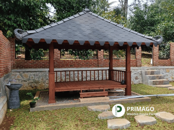 PRIMAGO Wooden House Factory sebagai pabrik gazebo kayu terdepan menyediakan gazebo kayu berkualitas tinggi yang cocok untuk berbagai keperluan outdoor. Setiap gazebo dibuat dengan desain yang elegan dan material kayu pilihan yang tahan terhadap cuaca. Kami menawarkan berbagai model gazebo kayu yang siap pakai, ideal untuk mempercantik halaman rumah, taman, atau area komersial Anda. Dibuat dengan material kayu berkualitas, setiap gazebo dirancang tahan lama dan estetis, cocok untuk menciptakan ruang santai.